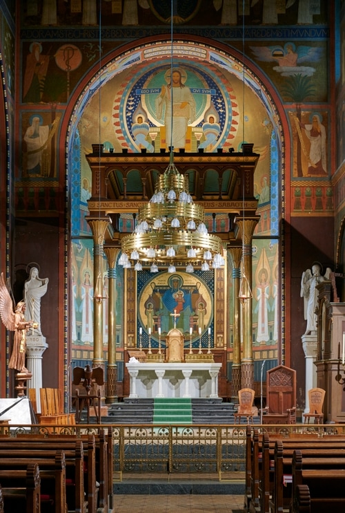 Gabriel Loci is a unique place in Prague 5, near the Kinsky Garden. The area of Saint Gabriel Monastery was built in the Neo-Romanesque style. This unique building, created in 1888–1891, features rare artistic decoration in the style of the Beuron Art School. The area includes the Neo-Romanesque Church of the Annunciation with fascinating paintings.